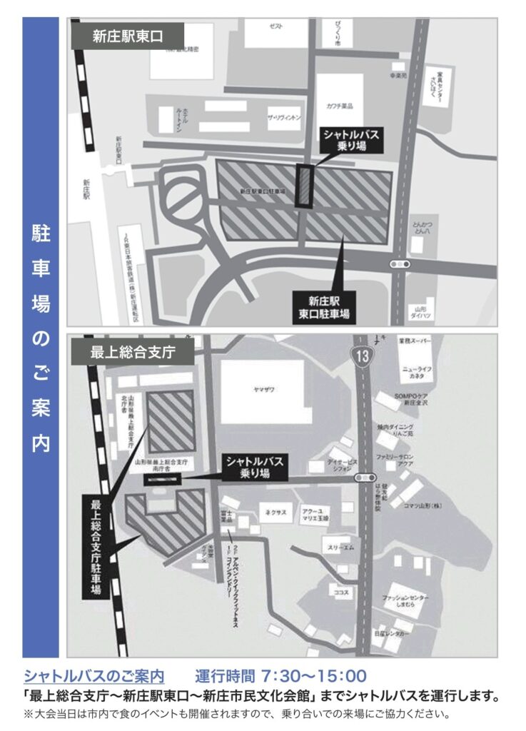 第3回新庄キャッスルサイドリレーマラソン大会へのご参加、ありがとうございます。 駐車場およびシャトルバスのご案内です。